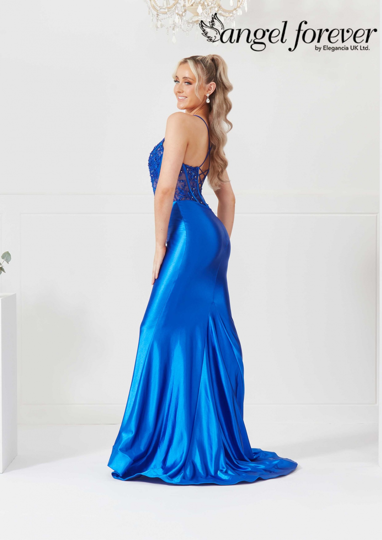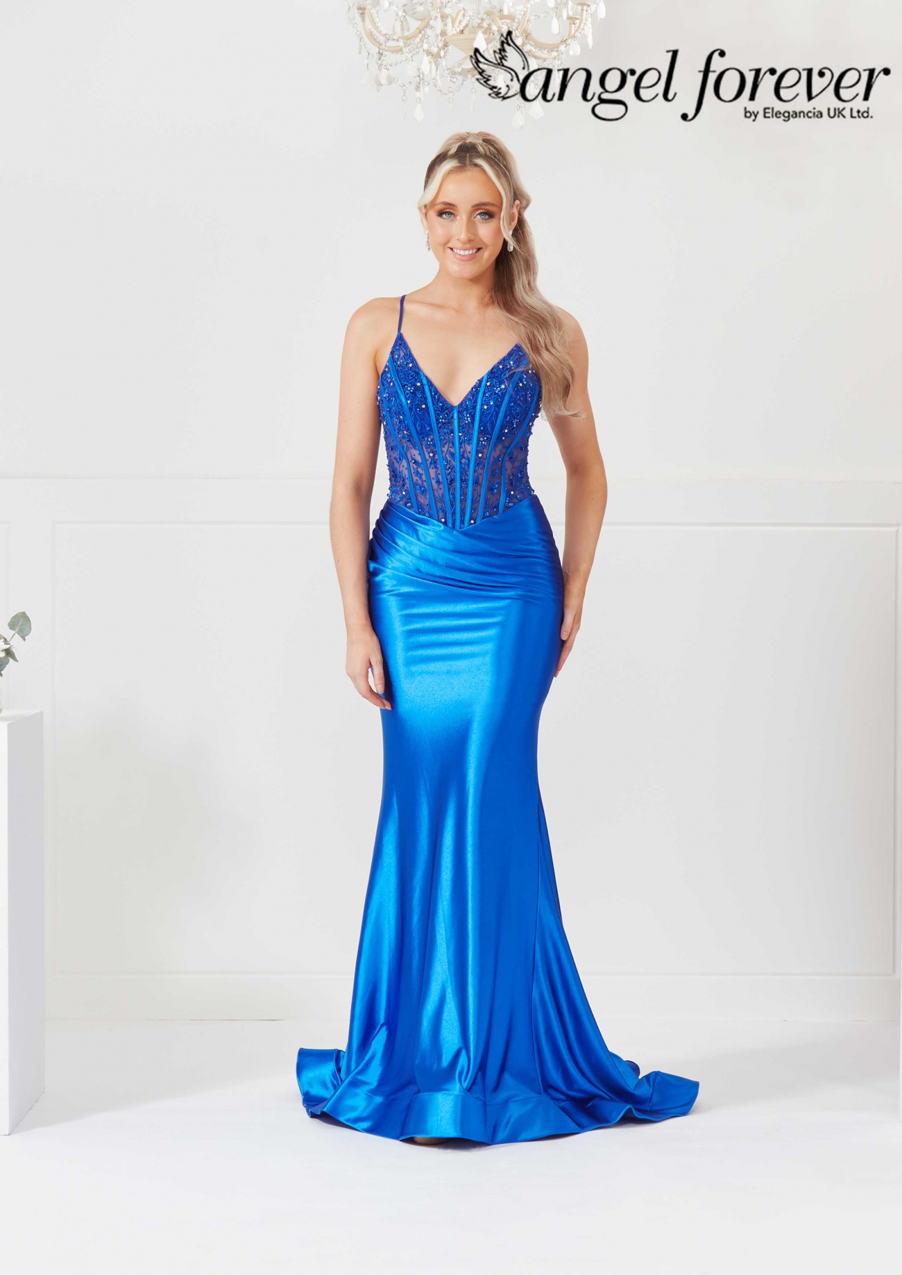 Satin fitted style. Corset lace up back. Embroided and beaded bodice.